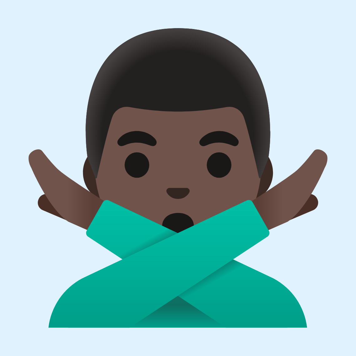 The emoji π πΏββοΈ Man gesturing NO: dark skin tone evolves from the π ββοΈ Man gesturing NO emoji by integrating a πΏ Dark skin tone, emphasizing the significance of diverse representation in digital platforms. It upholds the original meaning of the emoji π ββοΈ Man gesturing NO while offering a means for users to express their identity. This enhancement makes for more meaningful and representative digital exchanges.