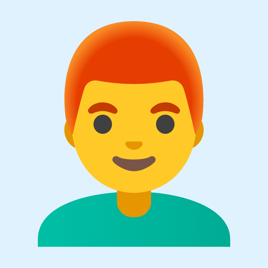 Man: red hair emoji π¨βπ¦° is part of the People & Body and People emojis. On some systems it can be accessed by using :man_red_hair:, :man_red_haired: or :red_haired_man: shortcodes.