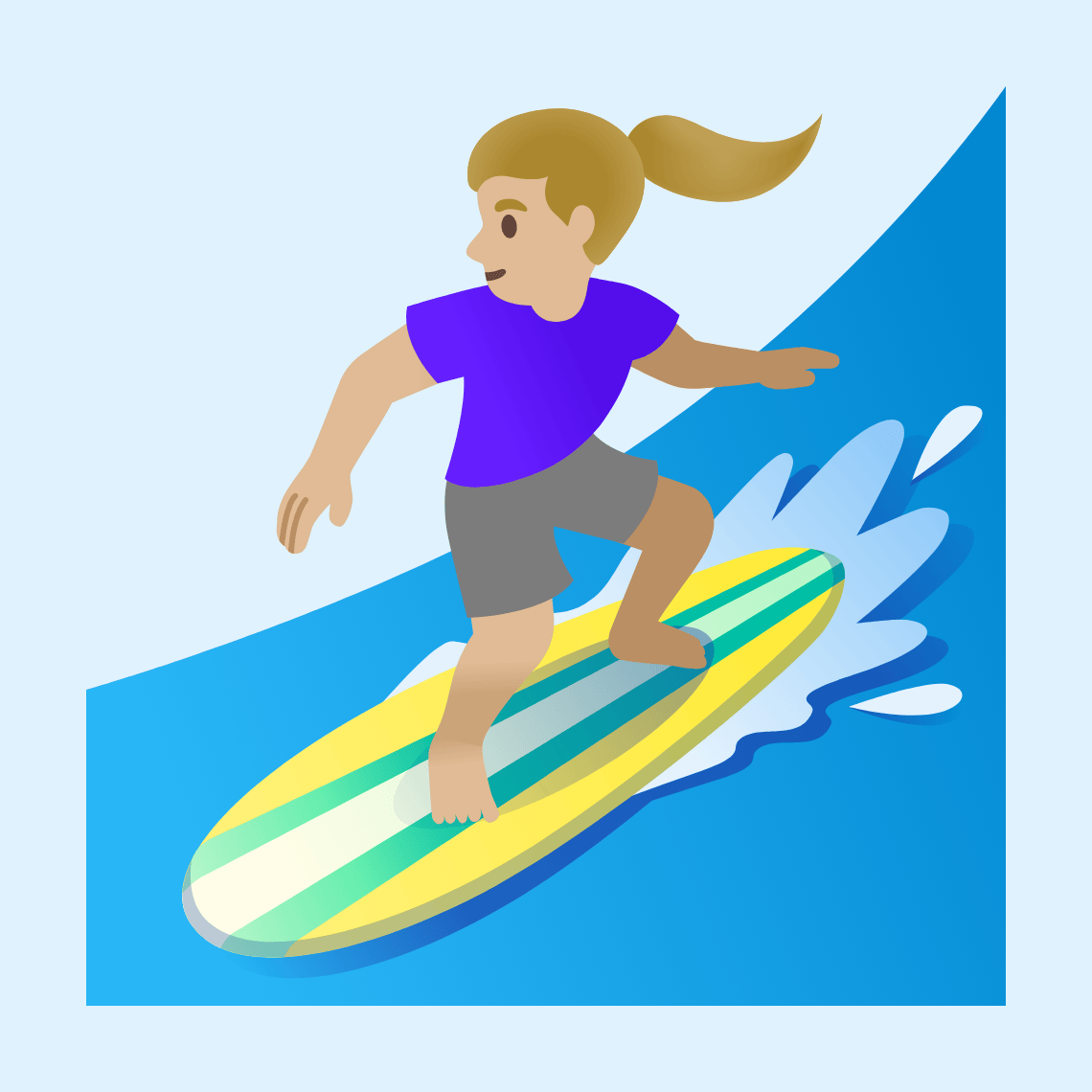 In the emoji ππΌββοΈ Woman surfing: medium-light skin tone, the πββοΈ Woman surfing emoji is adapted to feature a πΌ Medium-light skin tone, highlighting the value of inclusivity in emoji use. It upholds the original meaning of the emoji πββοΈ Woman surfing while offering a means for users to express their identity. Such adaptations contribute to a more diverse and authentic digital dialogue.